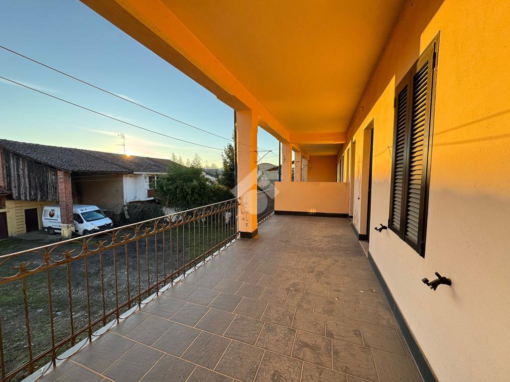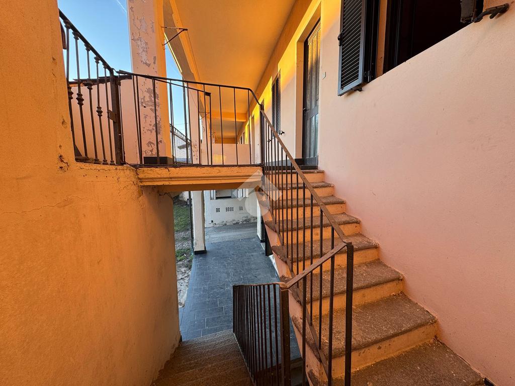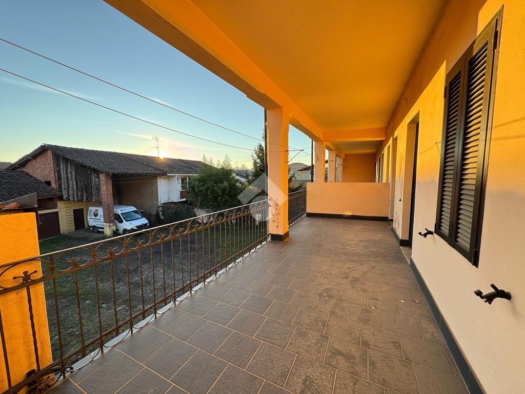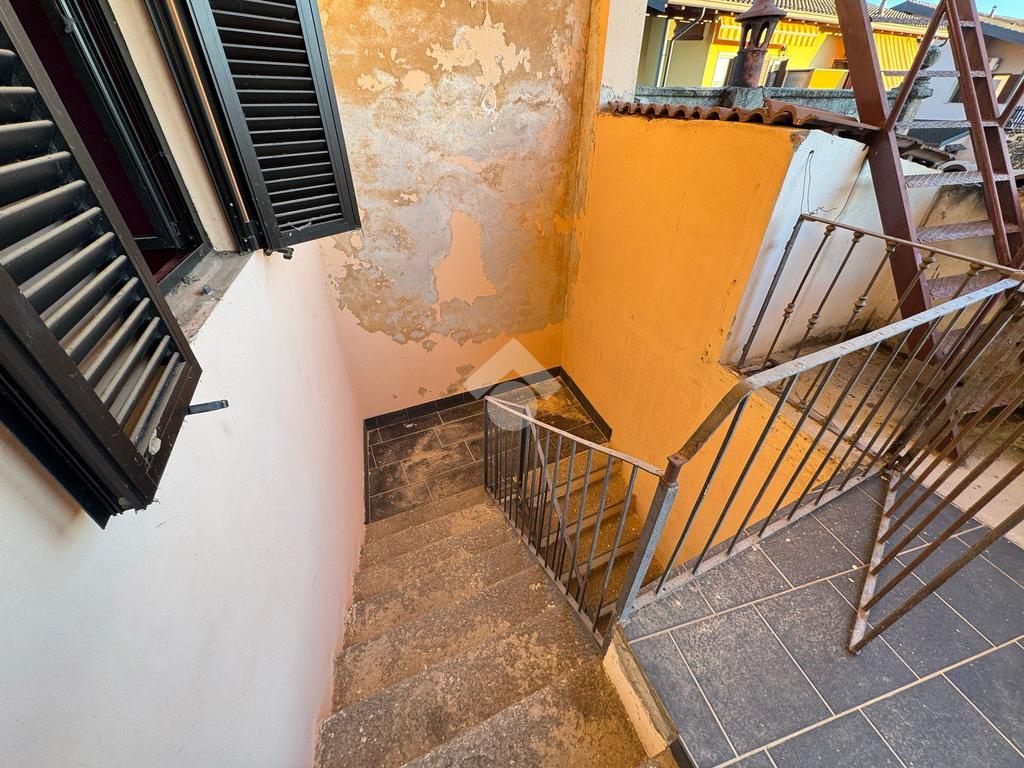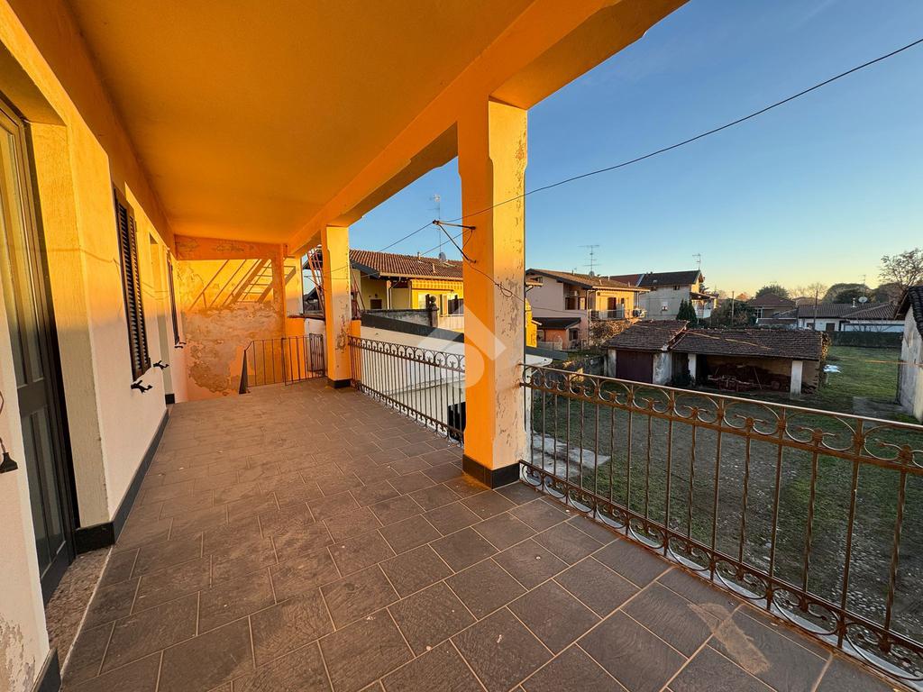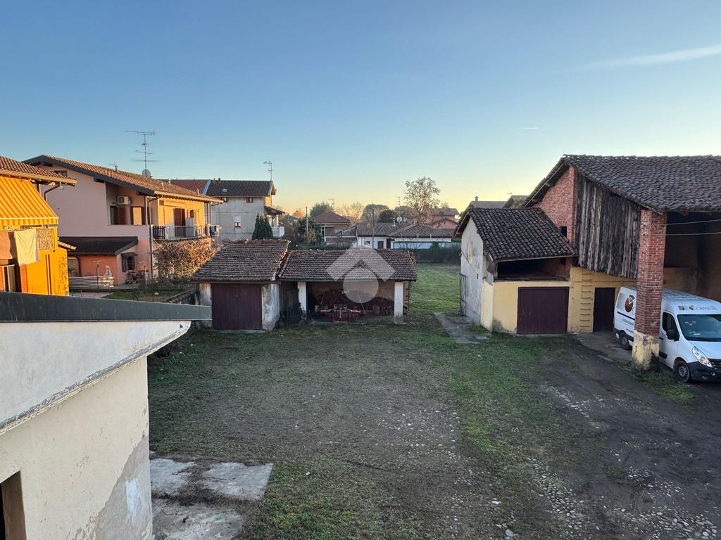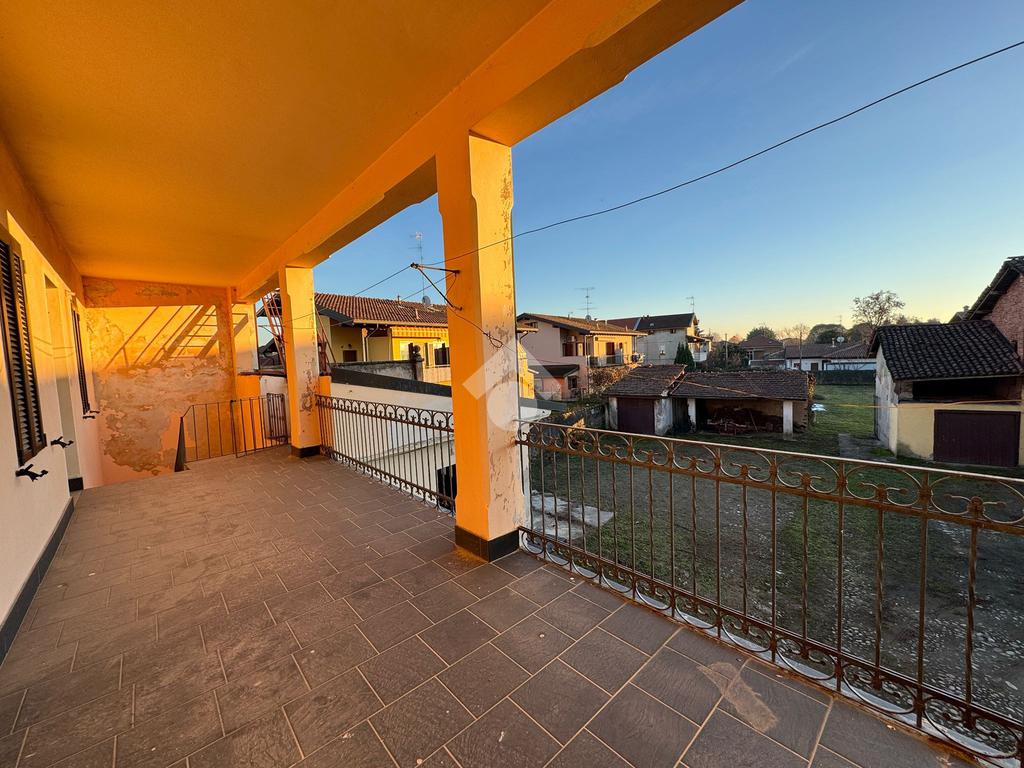 BELLINZAGO NOVARESE: In zona centrale porzione di casa bifamiliare disposta su tre livelli, da ristrutturare. Al piano di terra è presente un soggiorno e una cucina adiacente. Al primo piano, accessibile sia tramite scala a chiocciola interna, sia tramite scala esterna, sono presenti due camere da letto, un bagno, e un terrazzo esterno. Infine al secondo piano mansardato, sono presenti due locali allo stato grezzo, con possibilità di renderli abitabili. Concludono la proprietà un giardino esterno di . 400 mq, un deposio adibito a box, un cassero, una dépendance è un locale catinato sottostante. Il tetto è stato completamento ristrutturato circa quattro anni fa.