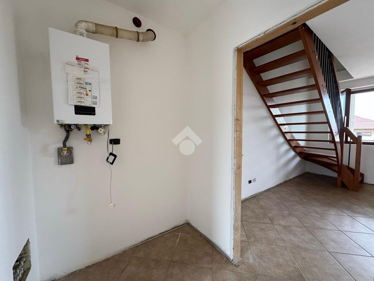 SUNO: In posizione strategica, appartamento duplex all'ultimo piano di un edificio costruito nel 2010. La zona giorno si apre su un ampio openspace con accesso al sottotetto, diviso in modo tale da creare un secondo bagno e due camere da letto. La zona notte è composta da un bagno finestrato e una camera da letto matrimoniale; entrambi i locali hanno accesso al balcone tramite una portafinestra. Completano la proprietà un box auto e un posto auto esterno.